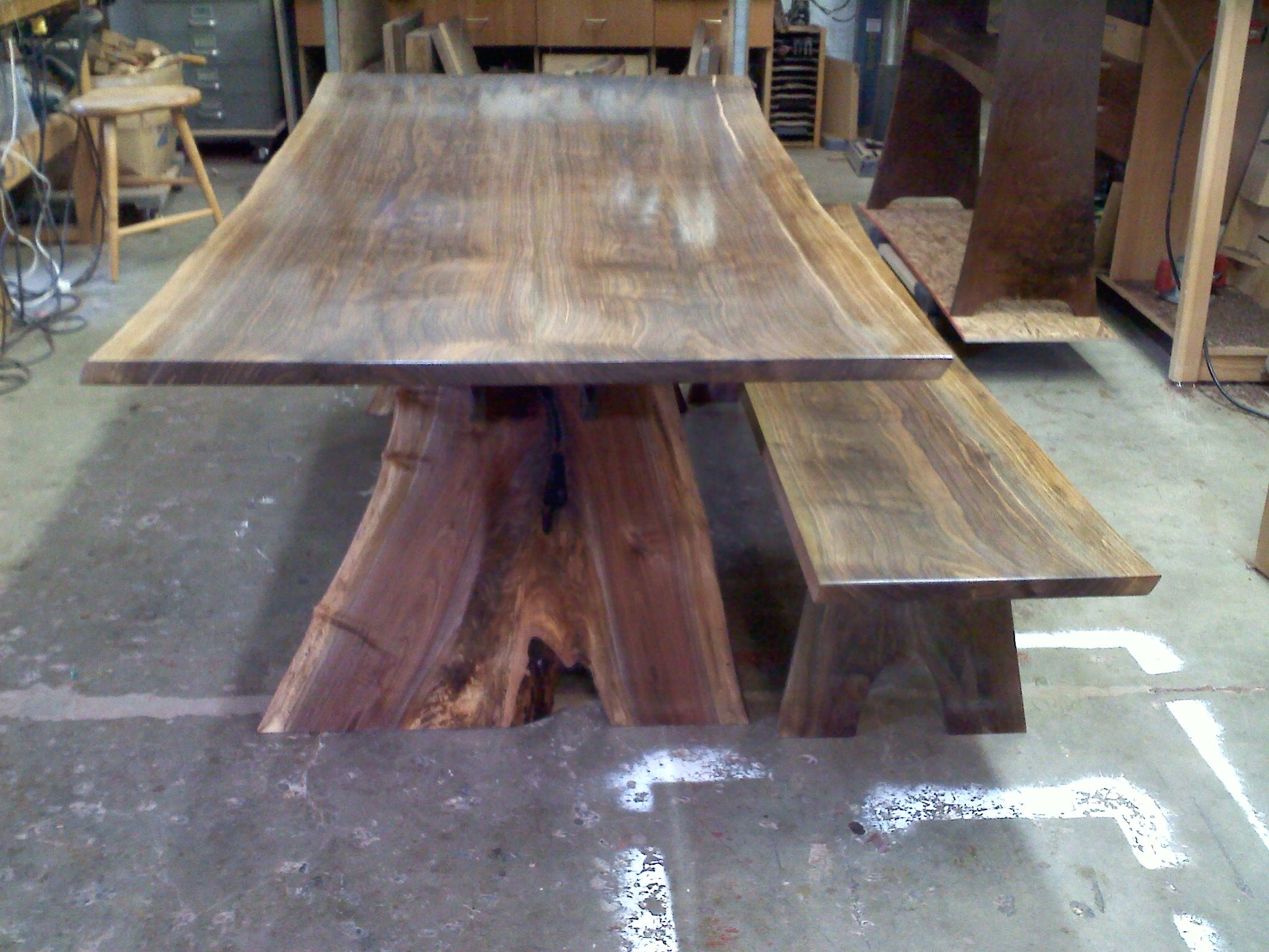 Live edge table and bench in Walnut.